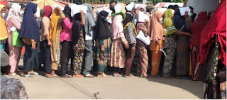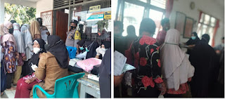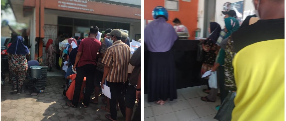 Pemerintah Desa (Mekar Sari, Pulau Rakyat Pekan, Persatuan) Kecamatan Pulau Rakyat melaksanakan Pembagian BLT Bantuan Program Sembako BPNT & Minyak Goreng Thn 2022 Di Kantor Pos Pulau Rakyat Senin, (18/04/2022).