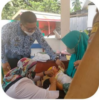 Camat Pulau Rakyat dan Ketua TP PKK Kecamatan Pulau Rakyat melaksanakan Kunjungan posyandu Seroja di Dusun II Desa Orika, Selasa (17/05/2022).