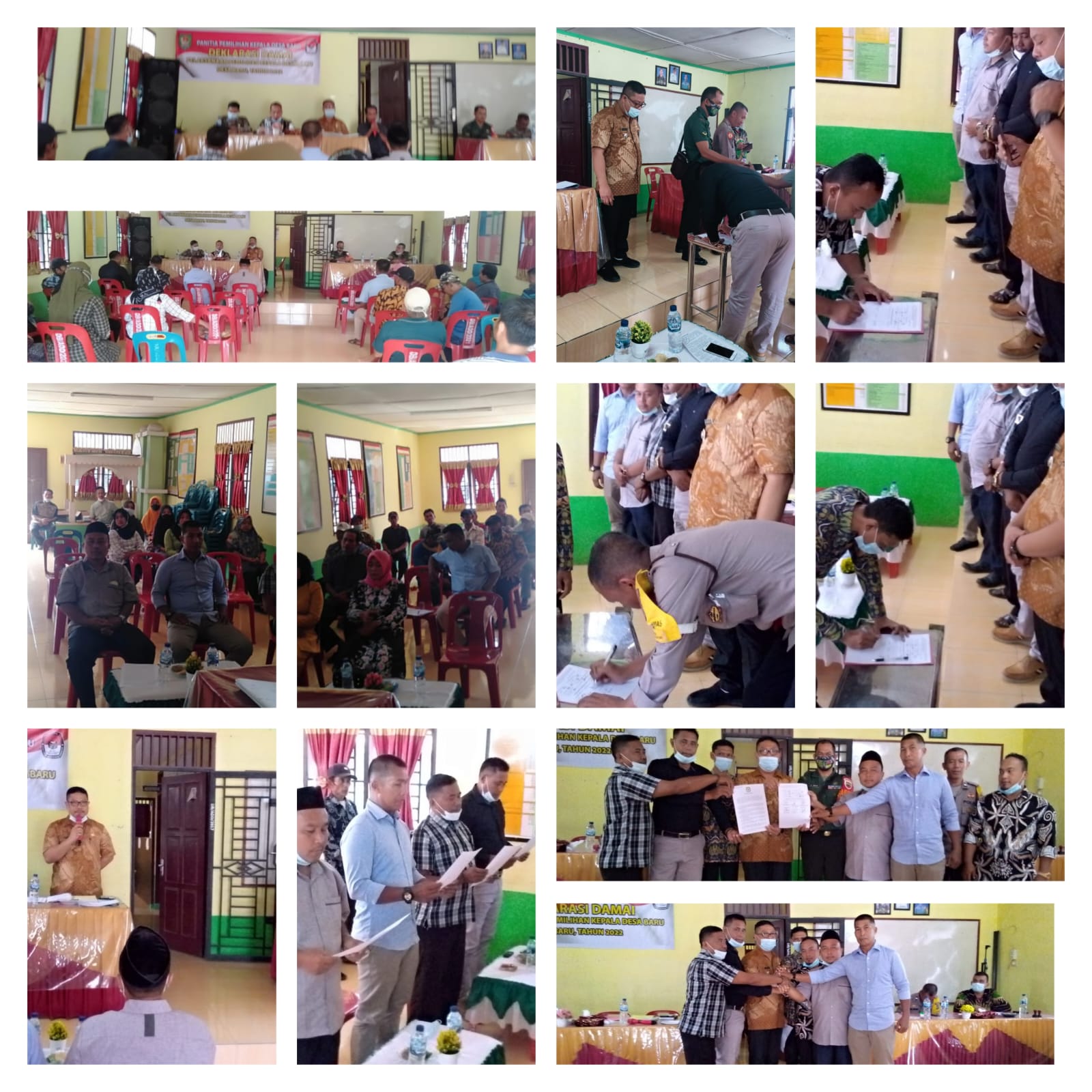 Camat Pulau Rakyat Rudi Darmawan, S.E. hadiri Deklarasi Damai Pilkades Desa Baru Tahun 2022 di aula kantor Desa Baru, Kamis (14/07/2022).