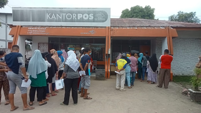 Kantor Pos Pulau Raja laksanakan penyaluran BLT kepada masyarakat Desa Pulau Rakyat Pekan, Mekar Sari dan Persatuan, Selasa (13 September 2022).
