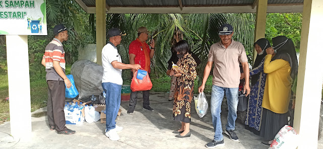 Pegawai Kantor Camat Pulau Rakyat melaksanakan penyetoran sampah/ barang bekas ke Bank Sampah Lestari, Jumat (23 September 2022).