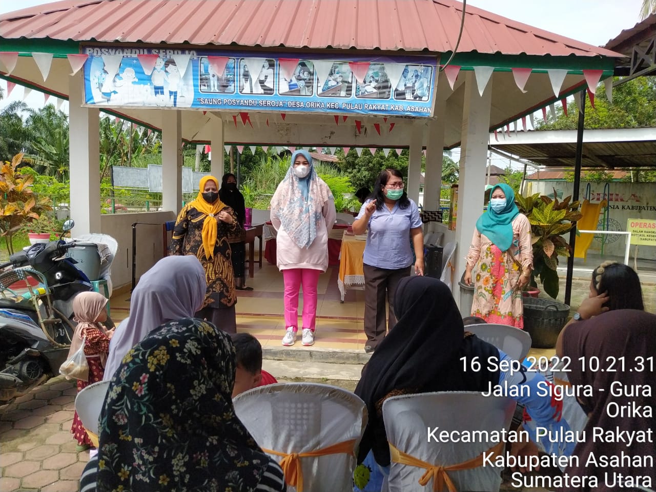 Turut hadir pada kegiatan ini Ketua TP PKK Kecamatan Pulau Rakyat, Petugas promkes puskesmas Pulau Rakyat dan bidan Desa Orika.