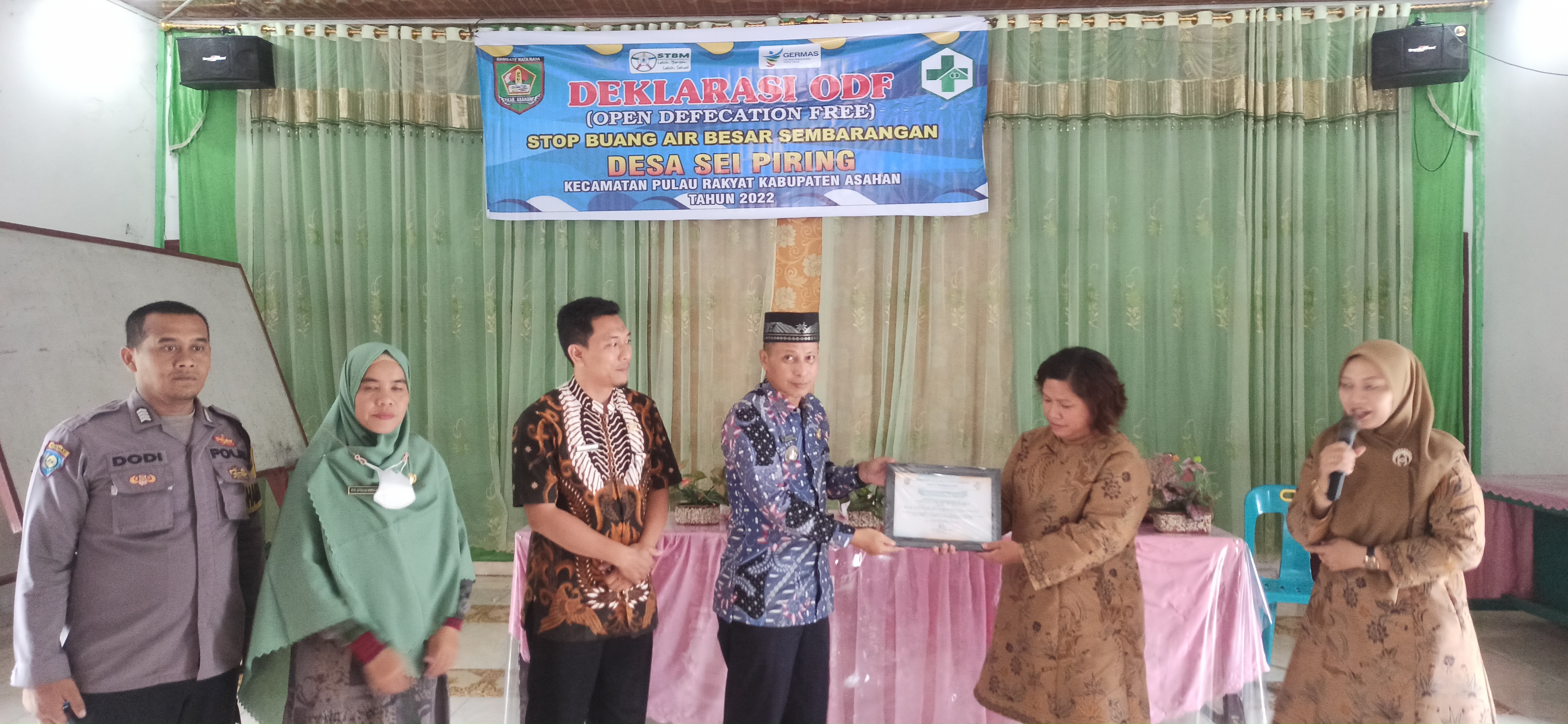 Dinas Kesehatan Kabupaten Asahan melalui Puskesmas Pulau Rakyat bersama Desa Sei Piring melaksanakan Deklarasi ODF Stop Buang Air Besar Sembarangan di Aula Desa Sei Piring, Jumat (9/12/2022).