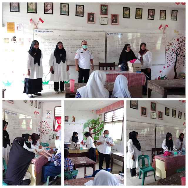 Sebelum memulai kegiatan, Kepala Puskesmas Ofa Padang bersama dengan Sekretaris Kecamatan Pulau Rakyat melakukan edukasi kepada para siswi akan pentingnya melaksanakan pemeriksaan kesehatan termasuk pengecekan kadar hemoglobin pada darah dan tahapan proses pemeriksaan yang akan dilakukan oleh para siswi.
