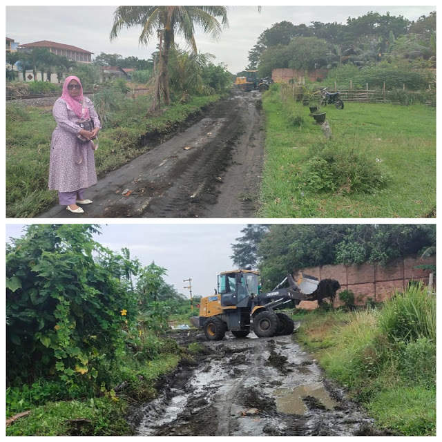 Lokasi titik start pawai ta'aruf sedang diadakan gotong royong dengan menggunakan bantuan alat berat untuk membersihkan lokasi tersebut.