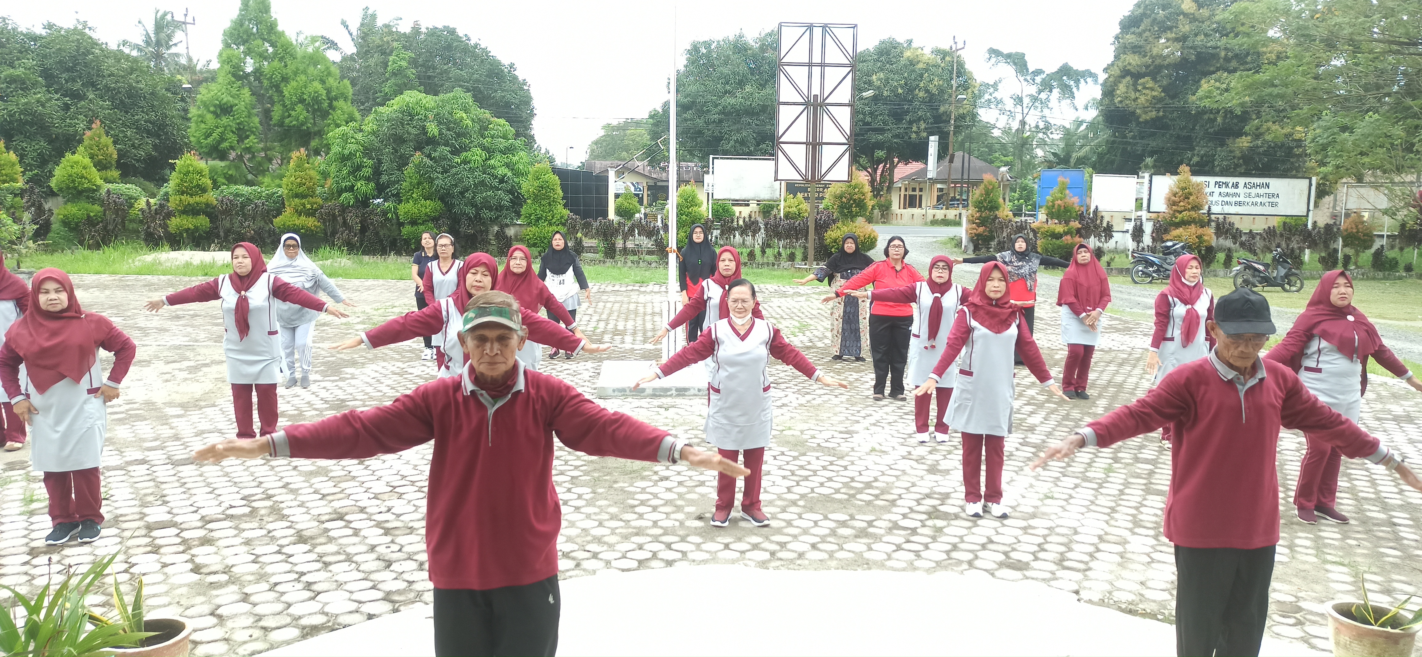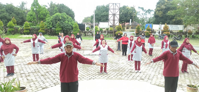 Pemerintah Kecamatan Pulau Rakyat adakan senam prolanis di halaman Kantor Camat Pulau Rakyat, Jumat (6/1/2023).