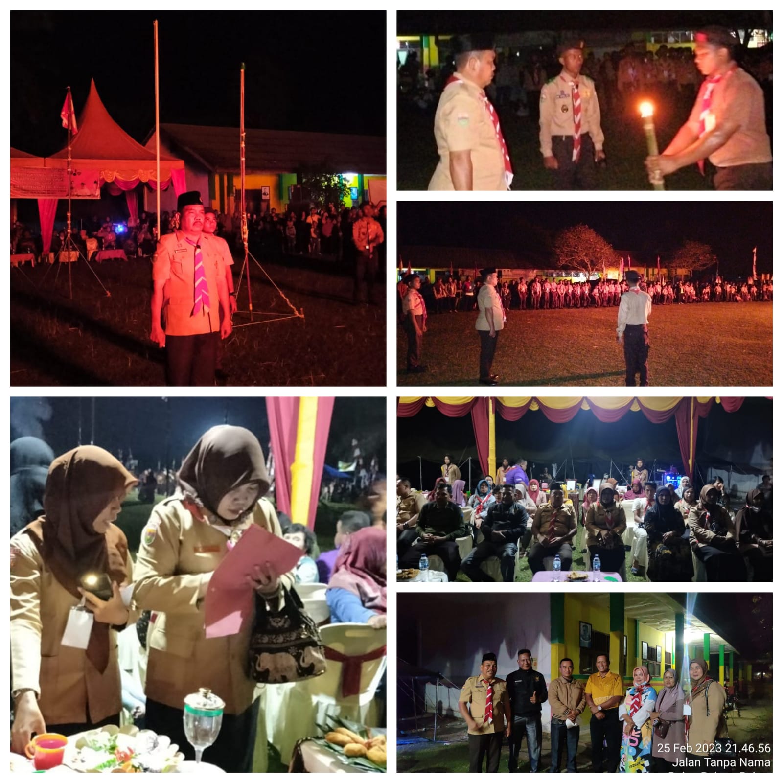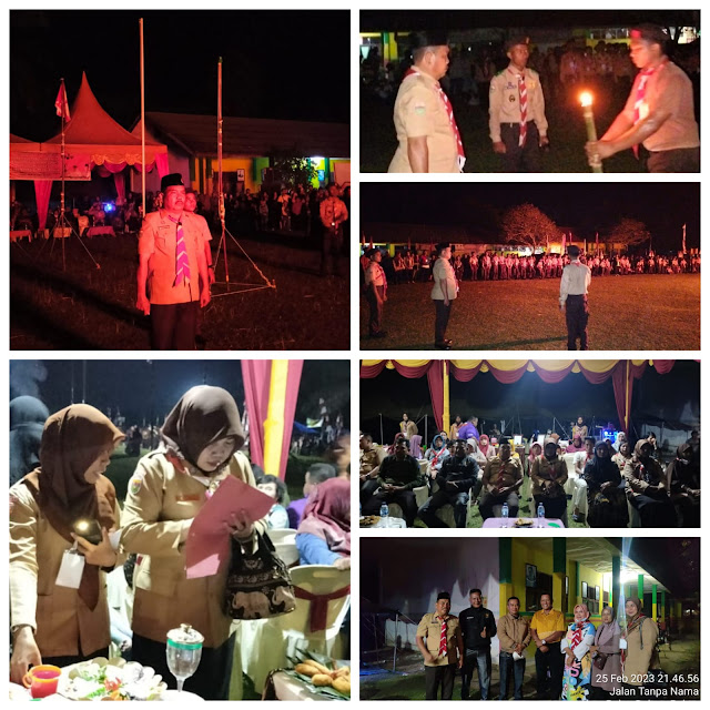 Camat Pulau Rakyat Haris Simargolang, SH pimpin Apel Malam Api Unggun pada kegiatan PERJUSAMI Pramuka Kwaran Pulau Rakyat di Bumi Perkemahan UPTD SD 010116 Desa Manis, Sabtu (25/2/2023).