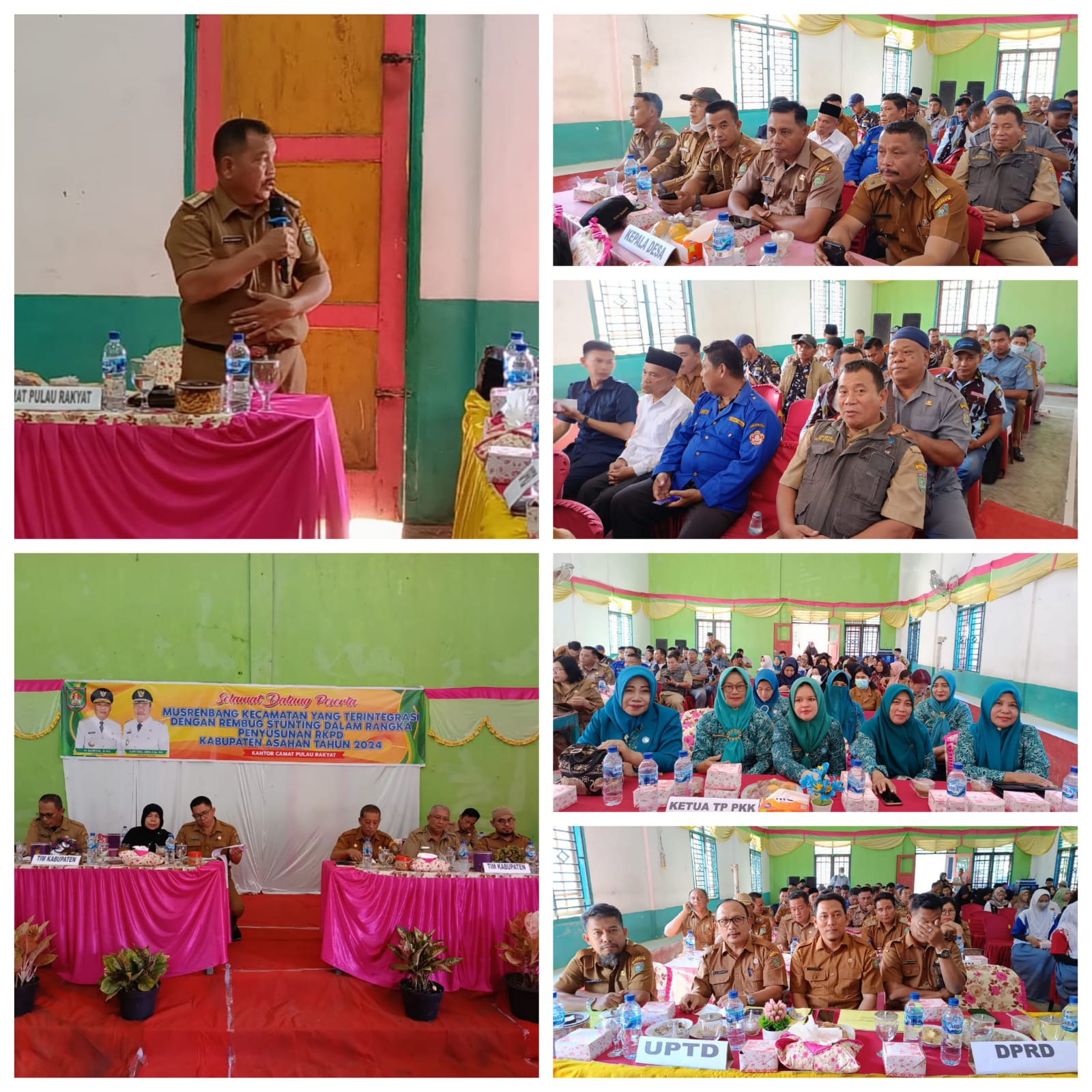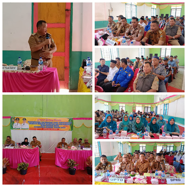 Musrenbang Terintegrasi dengan Rembug Stunting Kecamatan Pulau Rakyat dalam rangka penyusunan RKPD Kabupaten Asahan Tahun Anggaran 2024 dipimpin oleh Camat Pulau Rakyat dihadiri oleh Tim Monitoring Musrenbang Kabupaten Asahan, Rekan Forkopimcam, Ketua TP PKK Kecamatan, UPTD se-Kecamatan Pulau Rakyat, Korwil Pendidikan, Korwil PPKBPPPA, Kepala Puskesmas Pulau Rakyat, Kepala Puskesmas Ofa Padang Mahondang, Kepala Desa se-Kecamatan Pulau Rakyat, Ketua TP PKK Desa se-Kecamatan Pulau Rakyat, Tokoh Agama, Tokoh Masyarakat, Tokoh Pemuda dan seluruh undangan.
