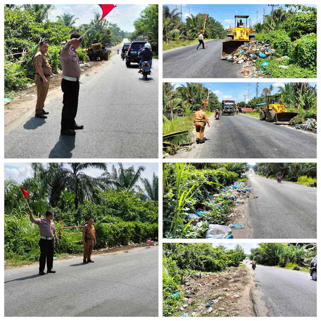 Pembersihan sampah ini dilakukan dengan menggunakan alat berat jenis loader dari PT. ASL dan untuk kelancaran arus lalu lintas dibantu oleh personel Satlantas Polsek Pulau Raja.