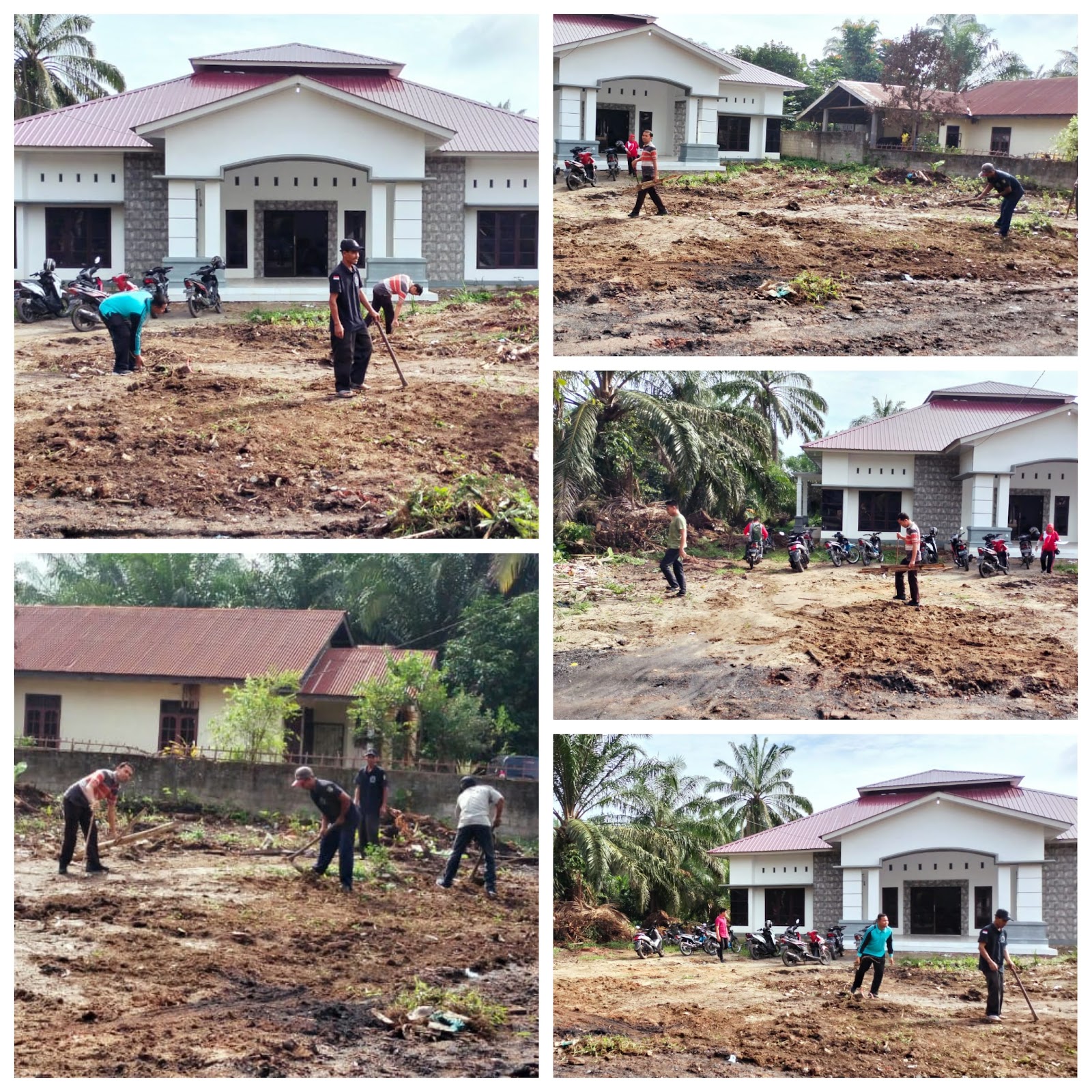 Pemerintah Kecamatan Pulau Rakyat bersama dengan Pemerintah Desa se-Kecamatan Pulau Rakyat melaksanakan gotong royong di Halaman Kantor Camat Pulau Rakyat yang baru, Jumat (03/03/2023).