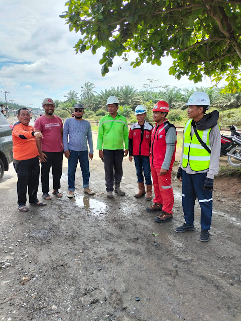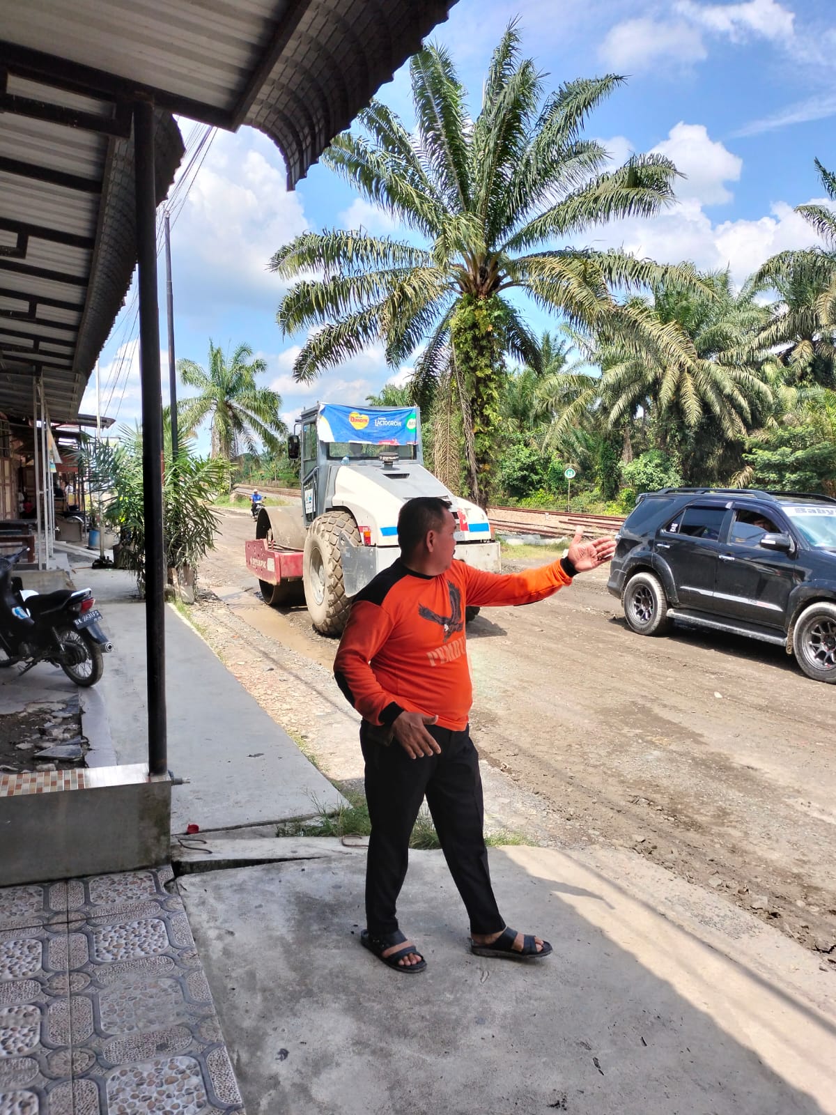 Camat Pulau Rakyat Haris Simargolang, SH melaksanakan kunjungan monitoring perbaikan Jalan Lintas Sigura-gura, Minggu (26/03/2023).