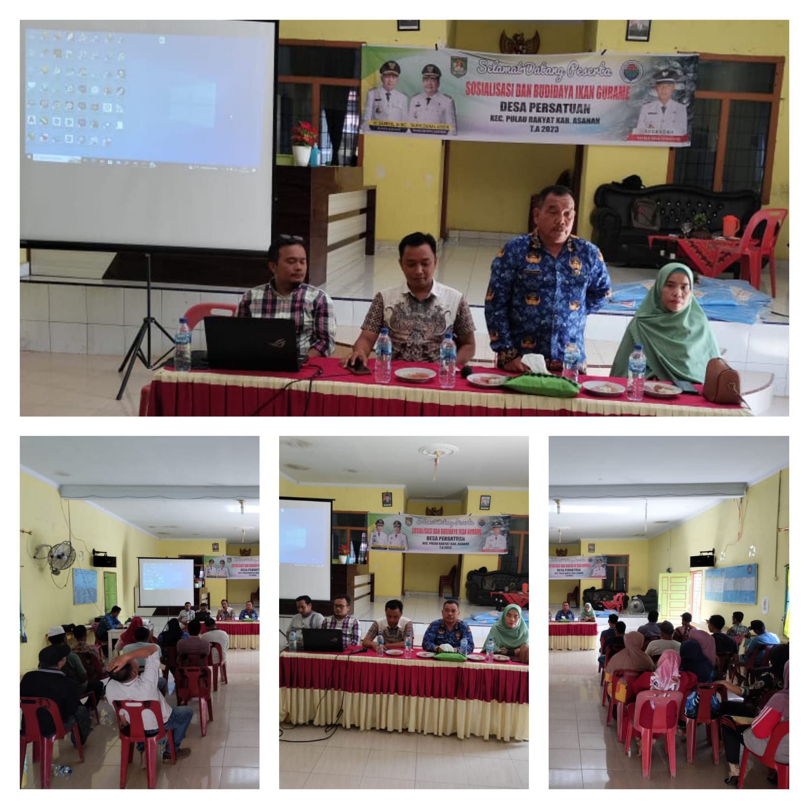 Camat Pulau Rakyat Haris Simargolang, SH membuka Sosialisasi dan Budidaya Ikan Gurame di Desa Persatuan, Jumat (17/03/2023).