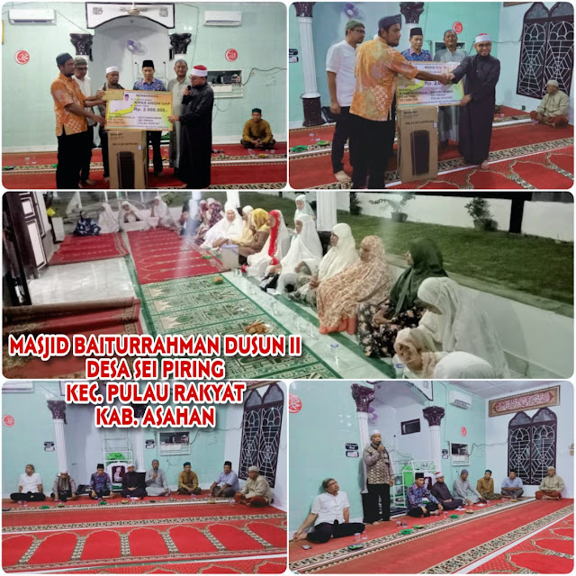 Pada kesempatan ini Tim Safari Ramadhan menyerahkan bingkisan berupa kipas angin uap dan uang tunai kepada pengurus masjid Baiturrahman Desa Sei Piring.