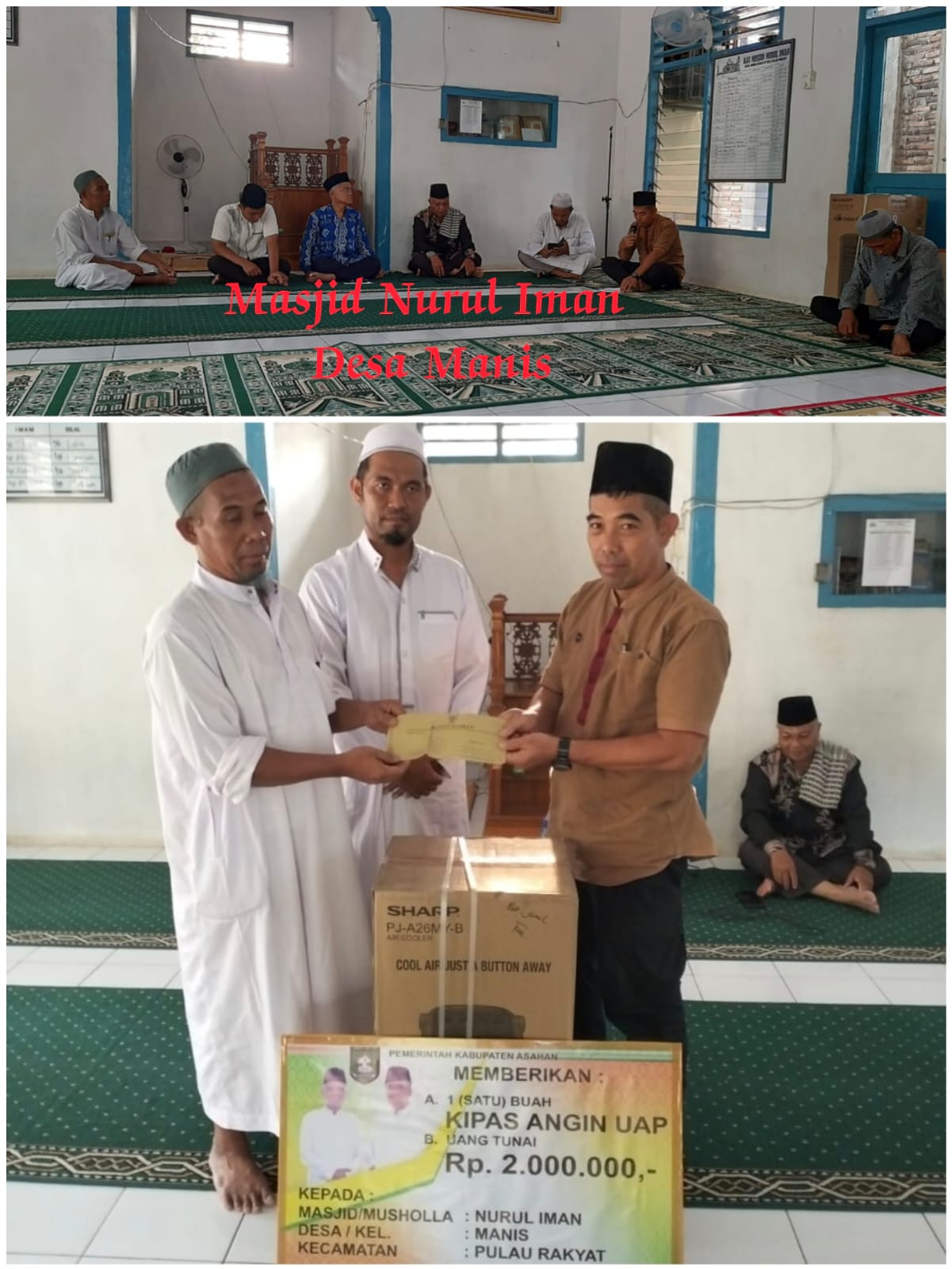 Pada kesempatan ini Tim Safari Ramadhan menyerahkan bingkisan berupa kipas angin uap dan uang tunai kepada pengurus masjid Nurul Iman Desa Manis.