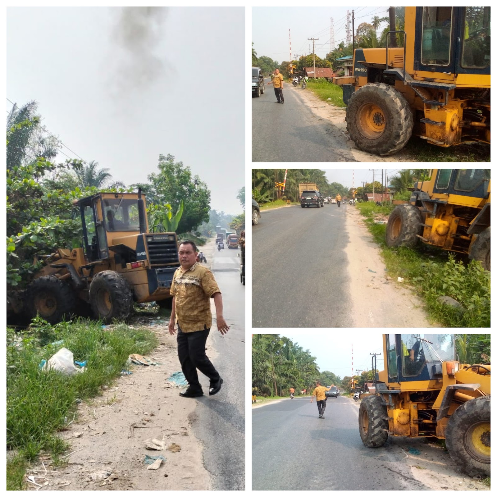 Camat Pulau Rakyat Haris Simargolang, SH turun langsung dalam menangani tumpukan sampah di Jalan Lintas Sumatera/ Jalan Perintis Kemerdekaan, Jum'at (14/4/2023).