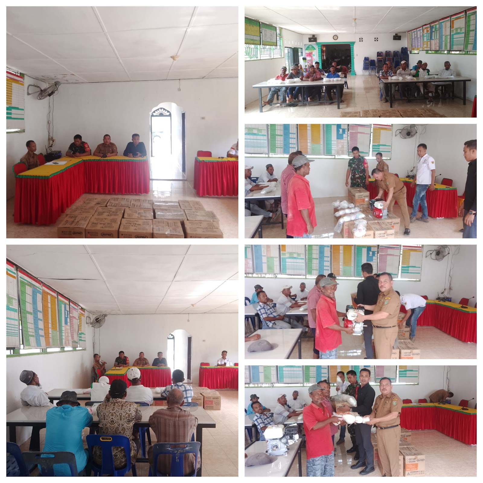 Pemerintah Desa Ofa Padang Mahondang bersama Camat Pulau Rakyat melaksanakan penyaluran bantuan berupa mesin sampan dan jaring kepada nelayan masyarakat Desa Ofa Padang Mahondang di Aula Kantor Desa Ofa Padang Mahondang, Selasa (18/4/2023).
