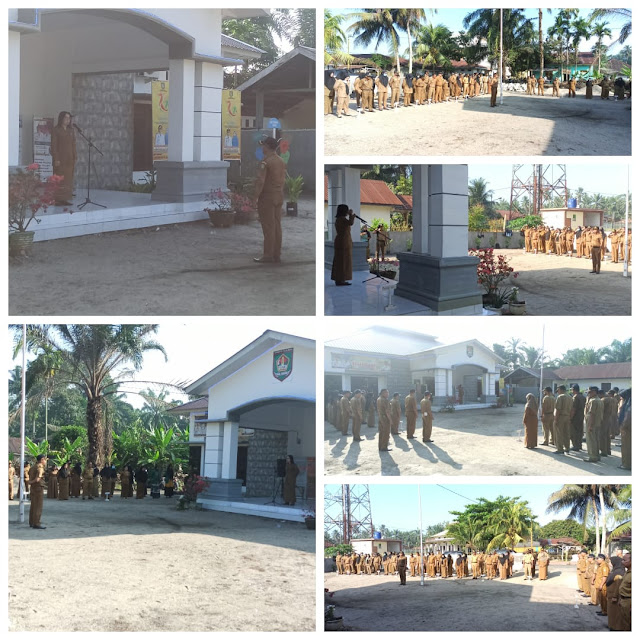Sekretaris Camat Pulau Rakyat Dianty Elfirita Damanik, S.K.M., M.K.M. pimpin apel gabungan Kecamatan Pulau Rakyat di Halaman Kantor Camat Pulau Rakyat, Senin (15/05/2023).