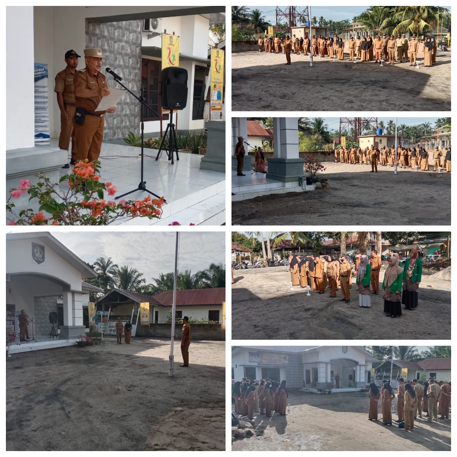 Camat Pulau Rakyat Haris Simargolang, SH pimpin apel gabungan Kecamatan Pulau Rakyat di Halaman Kantor Camat Pulau Rakyat, Senin (08/05/2023).