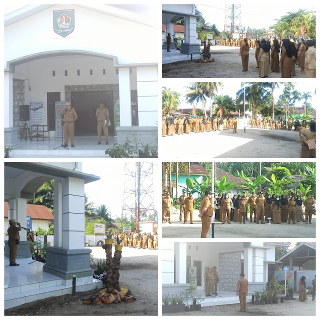 Camat Pulau Rakyat Haris Simargolang, S.H. pimpin apel gabungan Kecamatan Pulau Rakyat di Halaman Kantor Camat Pulau Rakyat, Senin (05/06/2023).