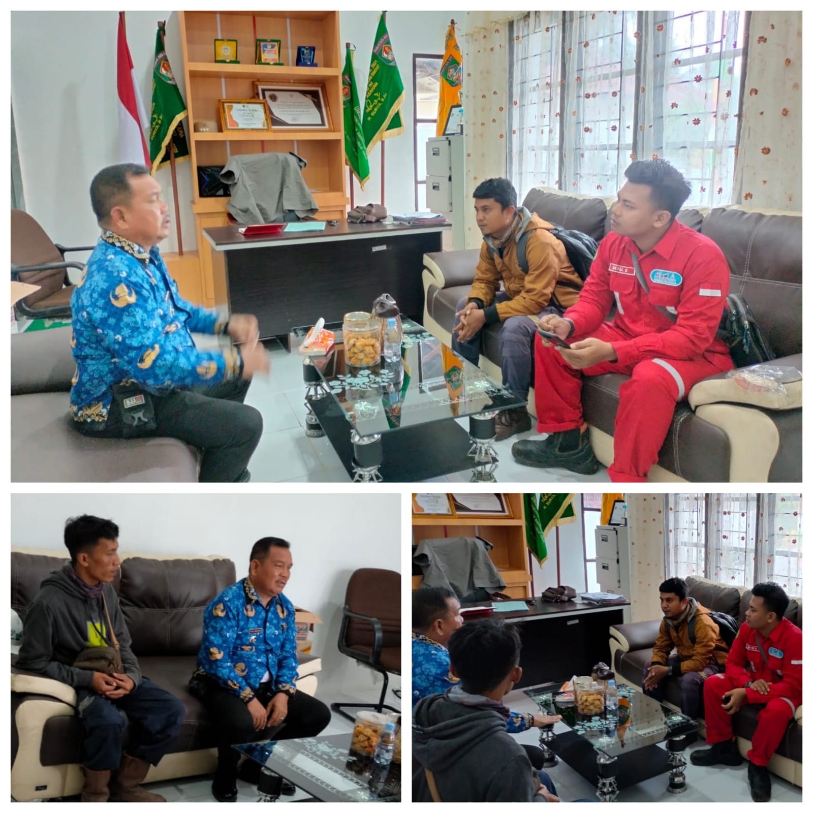 Camat Pulau Rakyat Haris Simargolang, SH menerima kunjungan dari Petugas Pelaksana Lapangan PT. Waskita di Ruang Kerja Camat Pulau Rakyat, Jum'at (23/06/2023).