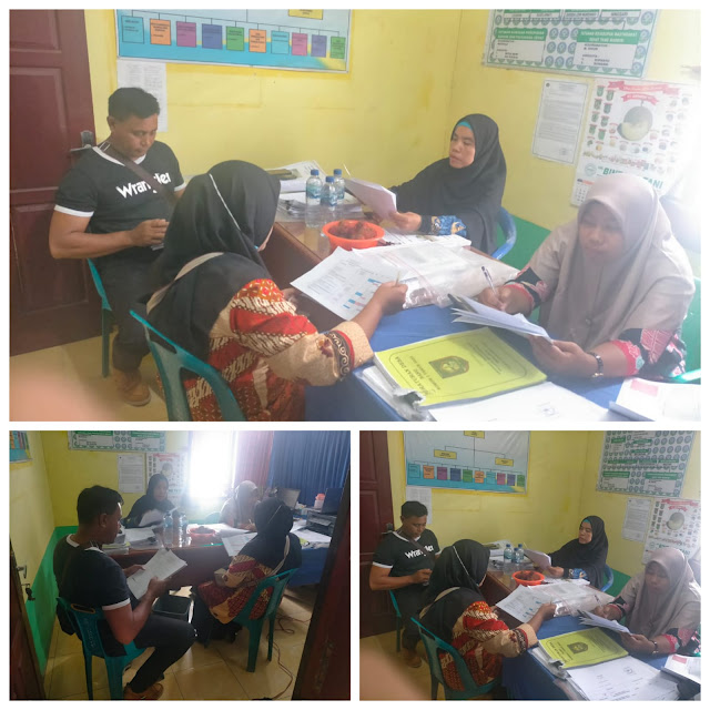 Pemerintah Kecamatan Pulau Rakyat melaksanakan monitoring dan evaluasi penggunaan APBDes untuk semester I tahun anggaran 2023 Desa Baru di Kantor Desa Baru, Jum'at (23/06/2023).