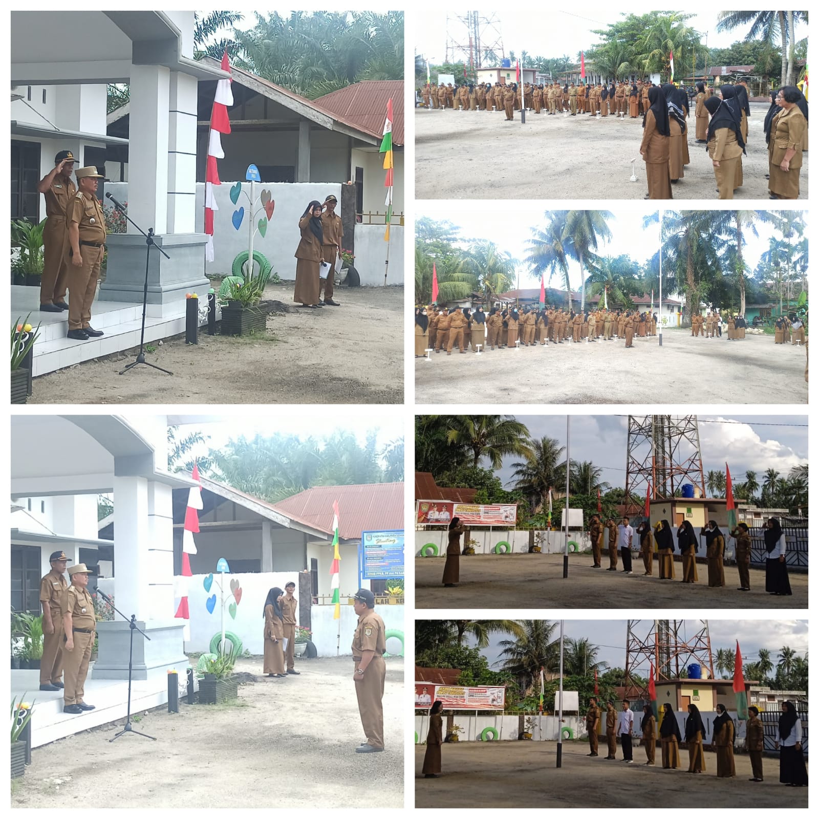 Camat Pulau Rakyat Haris Simargolang, S.H. pimpin apel gabungan Kecamatan Pulau Rakyat di Halaman Kantor Camat Pulau Rakyat, Senin (03/07/2023).