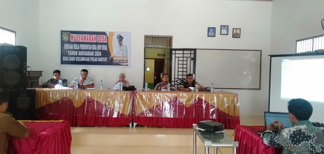 Dalam arahannya Camat Pulau Rakyat yang diwakili oleh Kasi PMK Kecamatan Pulau Rakyat menyampaikan kepada para peserta musyawarah agar ikut berpartisipasi memberikan ide dan masukan untuk RKPDes Tahun Anggaran 2024 Desa Baru. Lebih lanjut disampaikan khususnya kepada Pemerintah Desa agar nantinya dalam penyusunan RKPDes Tetap mengacu pada peraturan peraturan yang berlaku dan mengikut sertakan saran masukan dari peserta musyawarah dengan memperhatikan prioritas urgensinya.