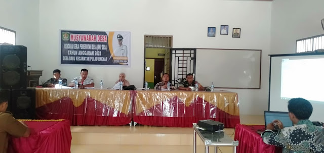 Kepala Desa Baru Hajirun membuka kegiatan Musyawarah Desa Rencana Kerja Pemerintah Desa (Musdes RKPDes) Tahun Anggaran 2024 Desa Baru di Aula Kantor Desa Baru, Jum'at (18/08/2023).