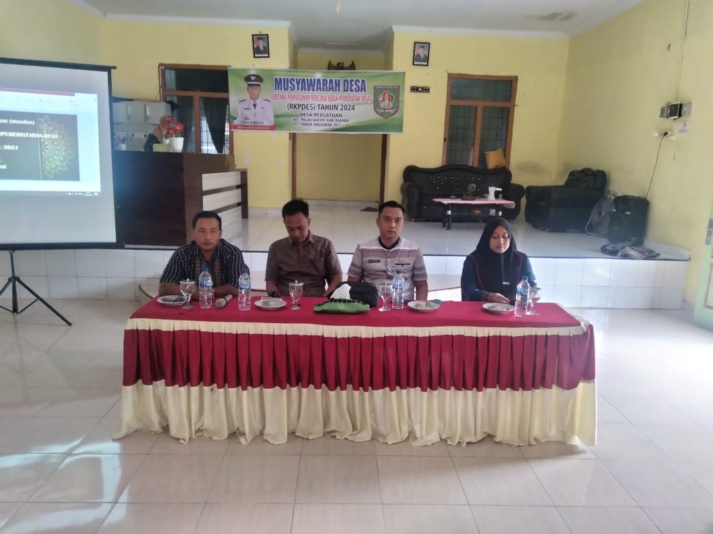 Kepala Desa Persatuan Sugandah membuka kegiatan Musyawarah Desa Rencana Kerja Pemerintah Desa (Musdes RKPDes) Tahun Anggaran 2024 Desa Persatuan di Aula Kantor Desa Persatuan, Jum'at (25/08/2023).
