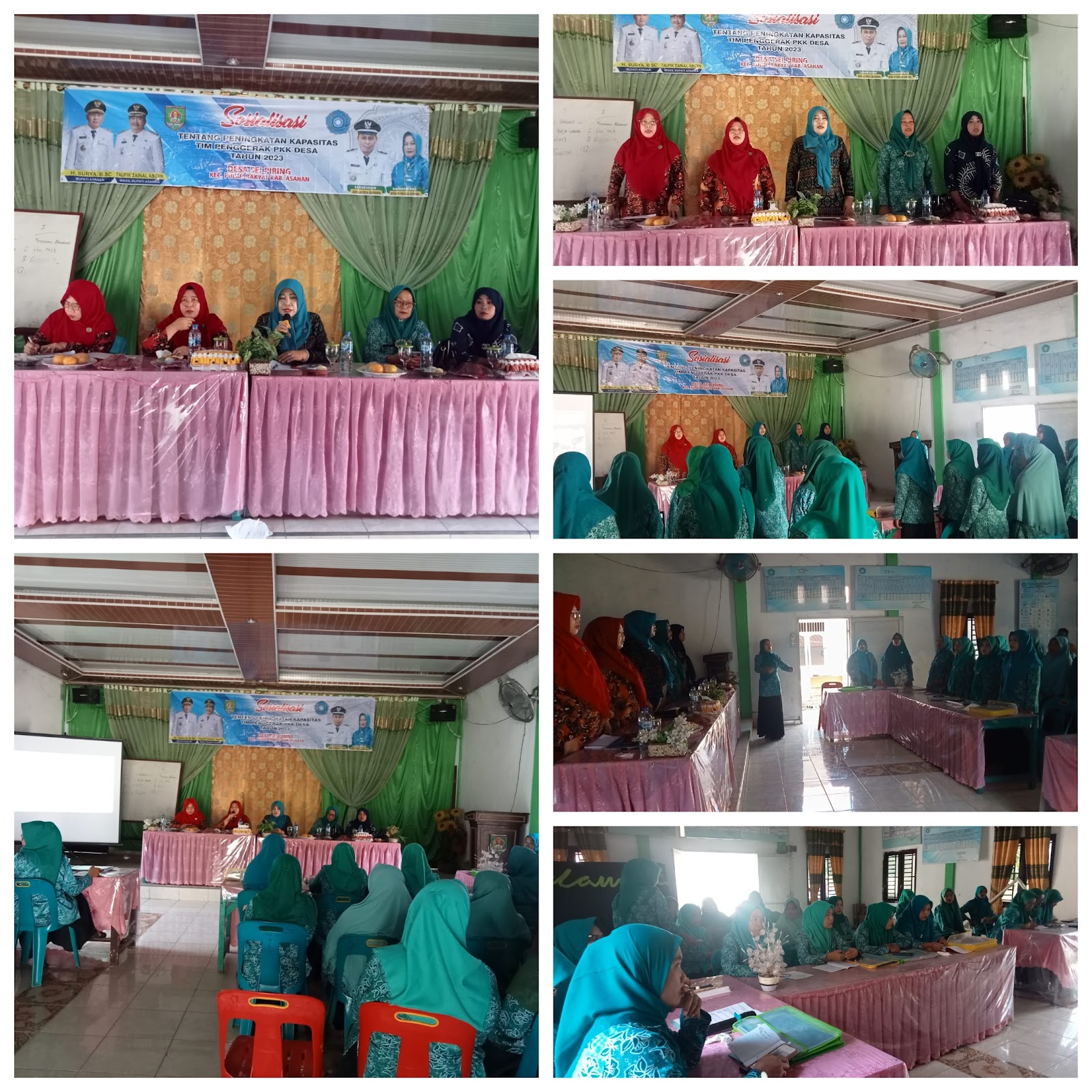 Ketua TP PKK Kecamatan Pulau Rakyat Ny. Khairani Haris Simargolang buka sosialisasi tentang peningkatan kapasitas TP PKK Desa Sei Piring di Aula Kantor Desa Sei Piring, Jum'at (04/08/2023).