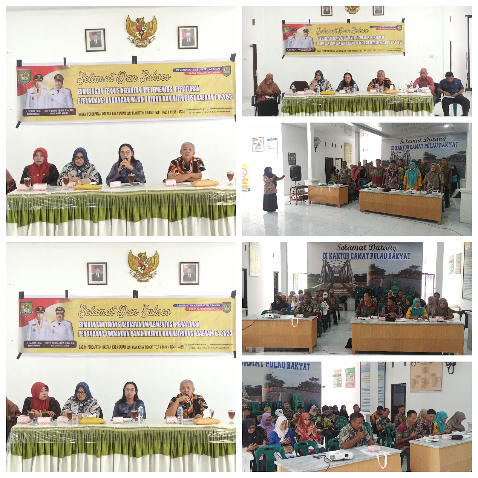 Badan Pendapatan Daerah (BAPENDA) Kabupaten Asahan adakan bimbingan teknis kegiatan implementasi peraturan perundang-undangan pajak daerah dan retribusi daerah Kabupaten Asahan Tahun 2023 di Aula Kantor Camat Pulau Rakyat, Kamis (07/09/2023).