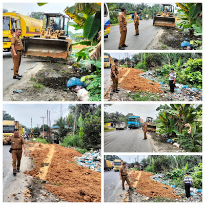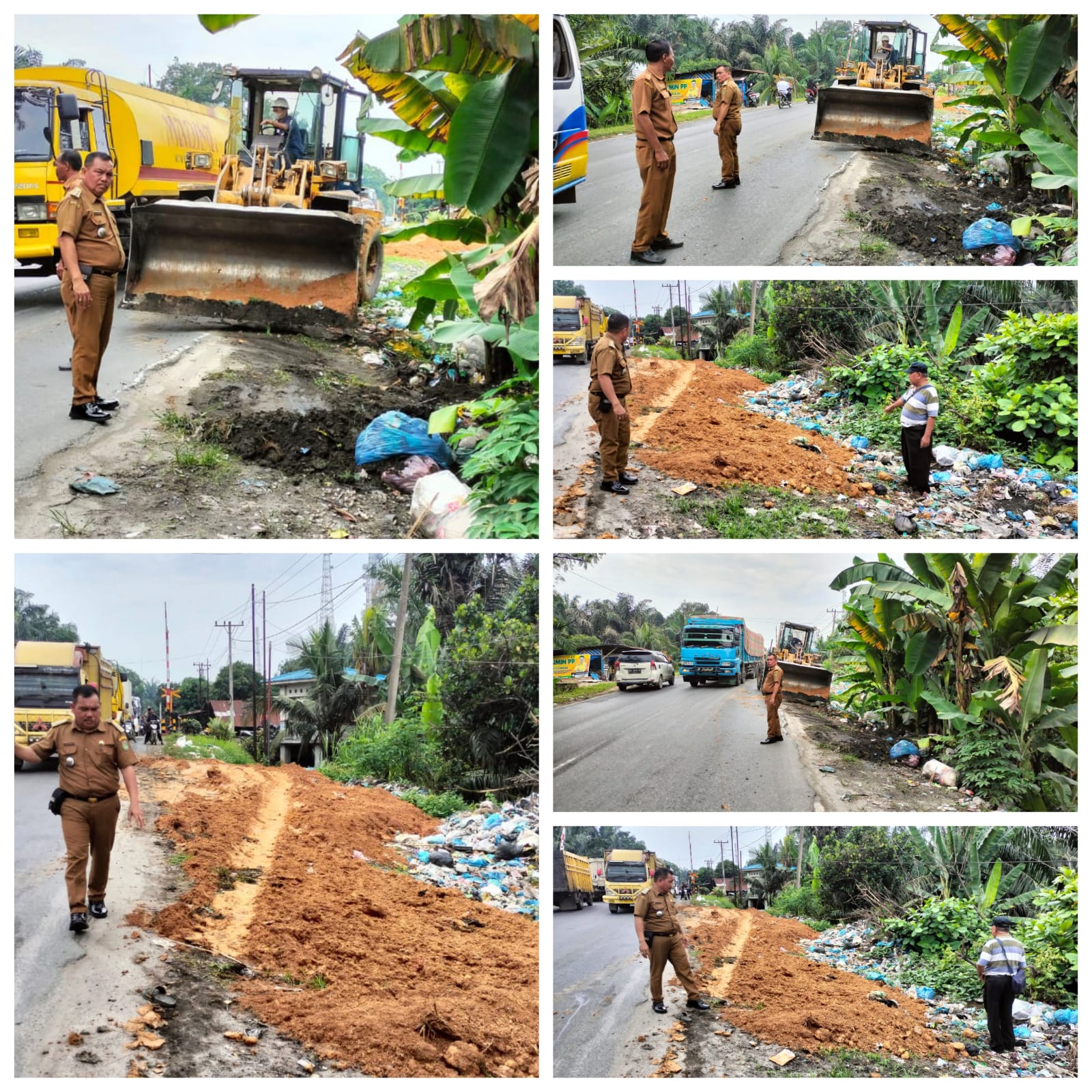 Camat Pulau Rakyat Haris Simargolang, SH turun langsung dalam menangani tumpukan sampah di Jalan Lintas Sumatera/ Jalan Perintis Kemerdekaan, Senin (02/10/2023).