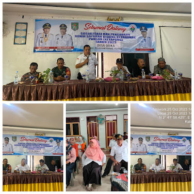 Camat Pulau Rakyat Haris Simargolang, SH hadiri Sosialisasi dan Pengadaan Bibit Sayuran Bidang Ketahanan Pangan (KETAPANG) Desa Orika Tahun 2023 di Aula Kantor Desa Orika, Rabu (25/10/2023).