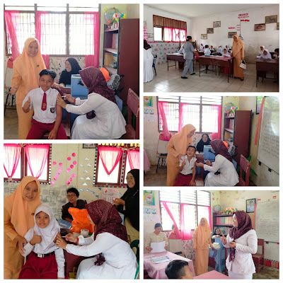Pelaksanaan Bulan Imunisasi Anak Sekolah (BIAS) di SDN 010125 Desa Ofa Padang Mahondang, Selasa (21/11/2023).