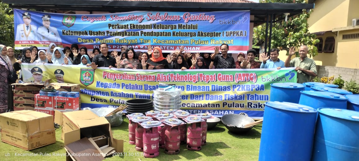 Dinas PPKBPPPA Kabupaten Asahan melaksanakan Penyerahan Alat Teknologi Tepat Guna kepada Pelaku usaha mikro binaan Dinas PPKBPPPA Kabupaten Asahan di Desa Pulau Rakyat Tua, Kamis (30/11/2023).