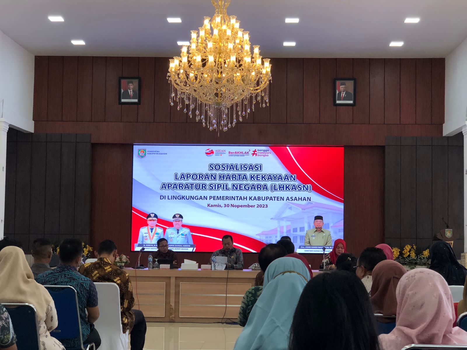 Sekretaris Camat Pulau Rakyat Dianty Elfirita Damanik, SKM., MKM menghadiri Sosialisasi Laporan Harta Kekayaan Aparatur Sipil Negara (LHKASN) di Pendopo Rumah Dinas Bupati Asahan, Kamis (30/11/2023).