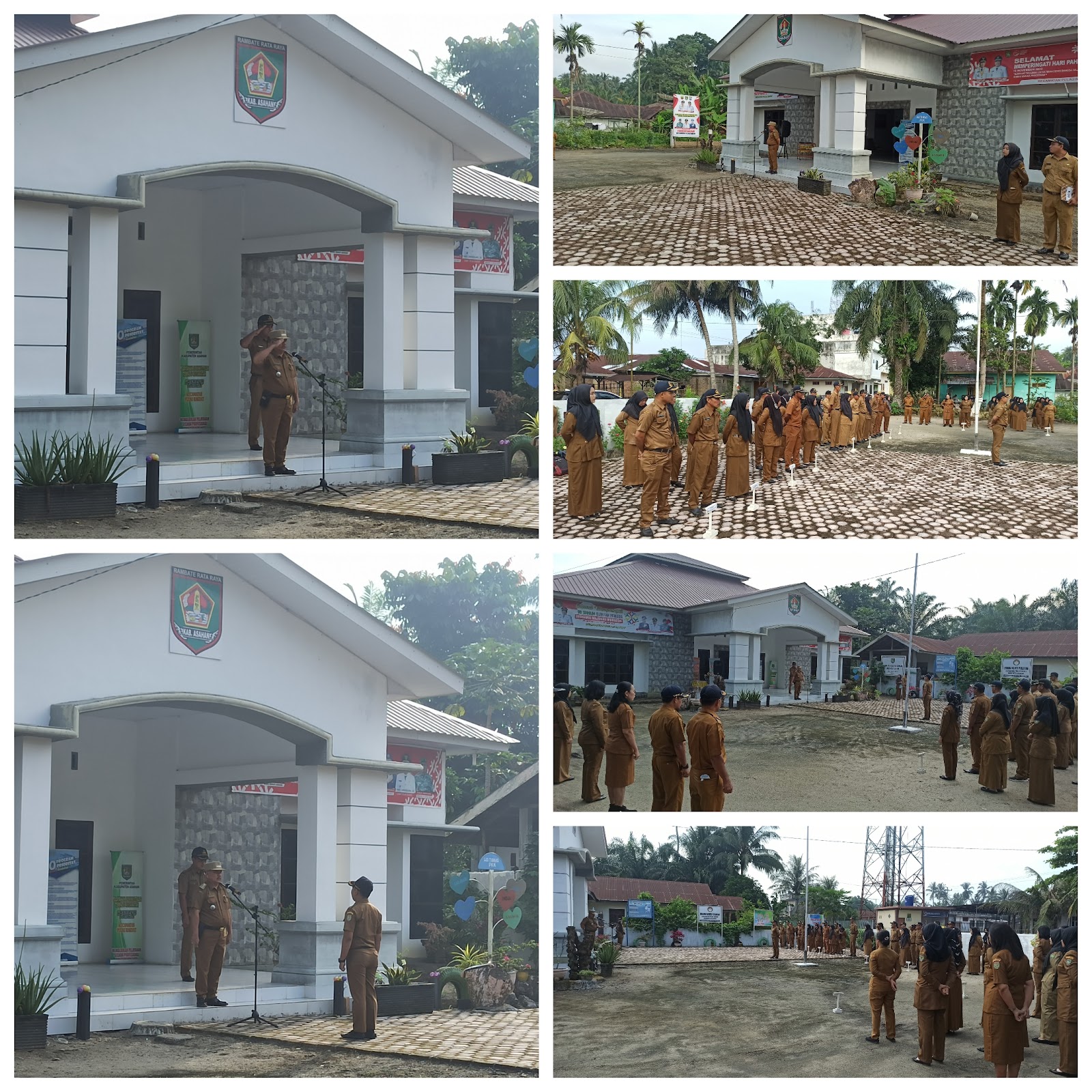 Pemerintah Kecamatan Pulau Rakyat melaksanakan Apel Gabungan Kecamatan Pulau Rakyat di Halaman Kantor Camat Pulau Rakyat, Senin (15/01/2024).