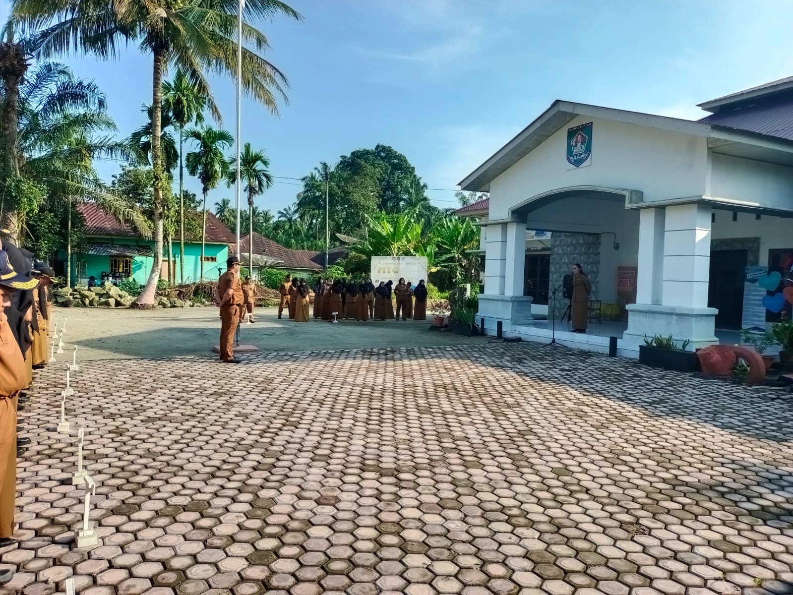 Sekretaris Camat Pulau Rakyat Dianty Elfirita Damanik, SKM, MKM, pimpin apel gabungan Kecamatan Pulau Rakyat di Halaman Kantor Camat Pulau Rakyat, Senin (06/05/2024).