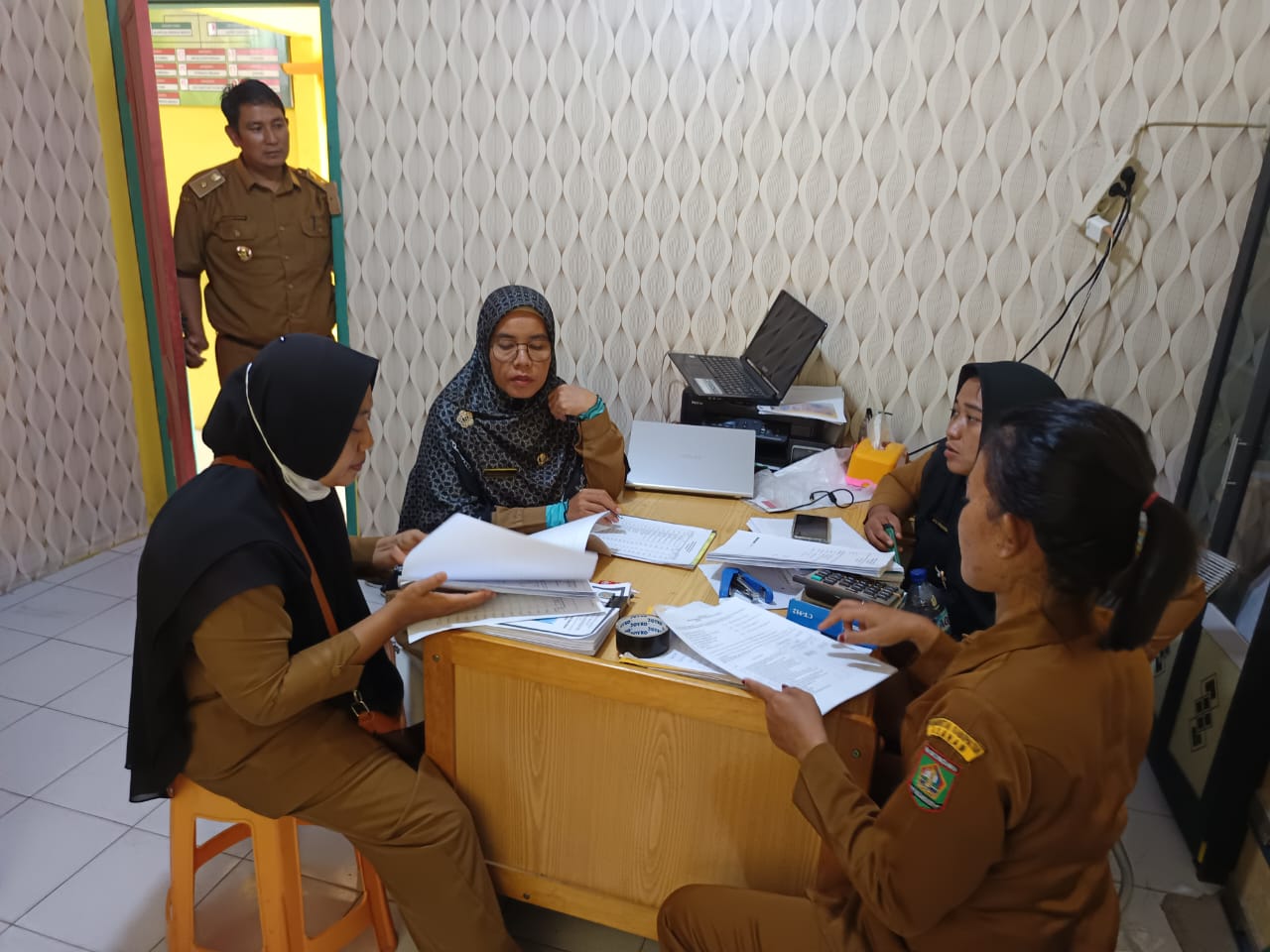 Pemerintah Kecamatan Pulau Rakyat melaksanakan monitoring dan evaluasi penggunaan APBDes untuk semester I tahun anggaran 2024 Desa Padang Mahondang di Kantor Desa Padang Mahondang, Senin (03/06/2024).