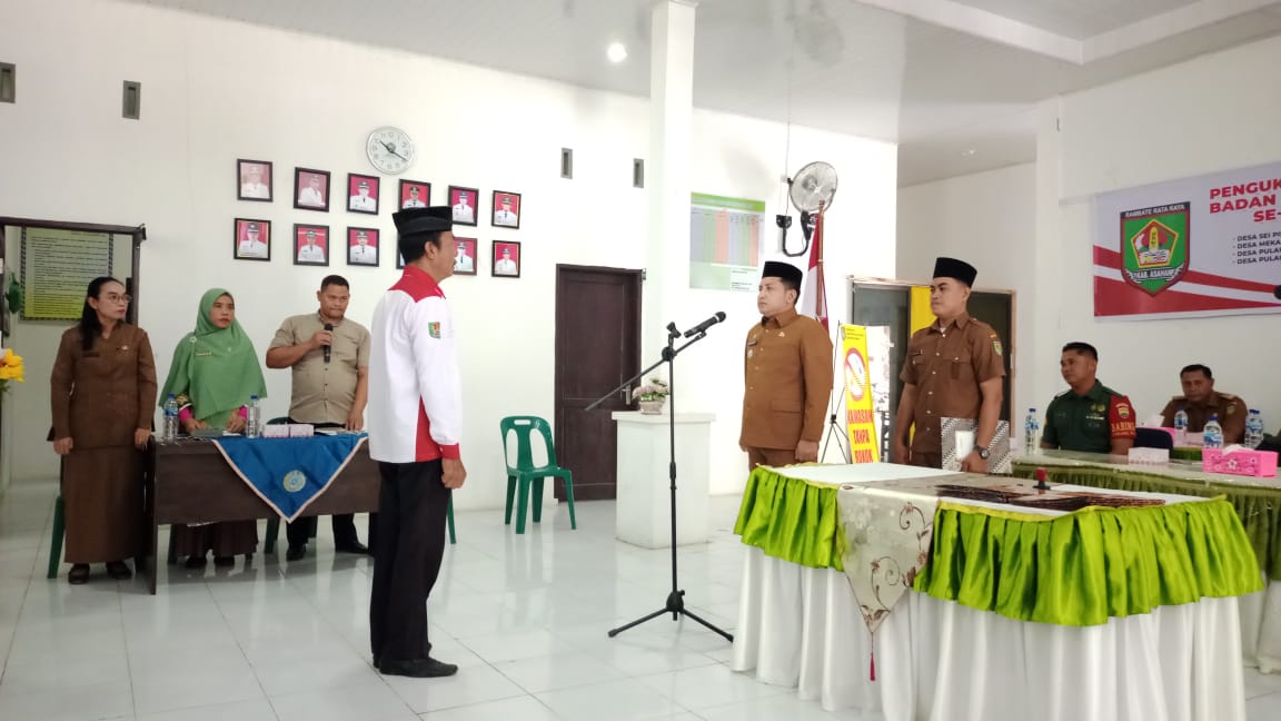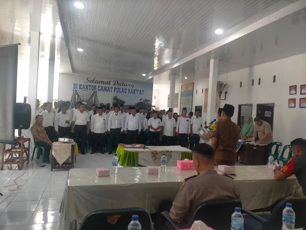 Camat Pulau Rakyat Muhammad Syarif AR, S.STP pimpin kegiatan pengukuhan masa jabatan anggota BPD se-Kecamatan Pulau Rakyat di Aula Kantor Camat Pulau Rakyat, Jum'at (21/06/2024).