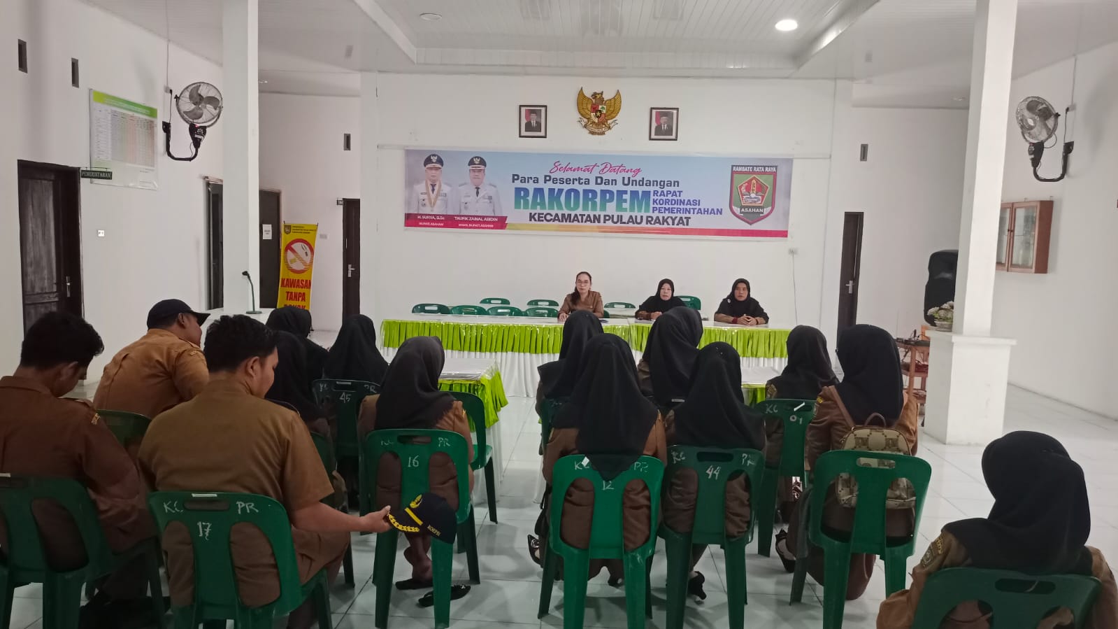 Pemerintah Kecamatan Pulau Rakyat lakukan pembinaan kepada perangkat desa se-Kecamatan Pulau Rakyat di Aula Kantor Camat Pulau Rakyat, Senin (08/07/2024).