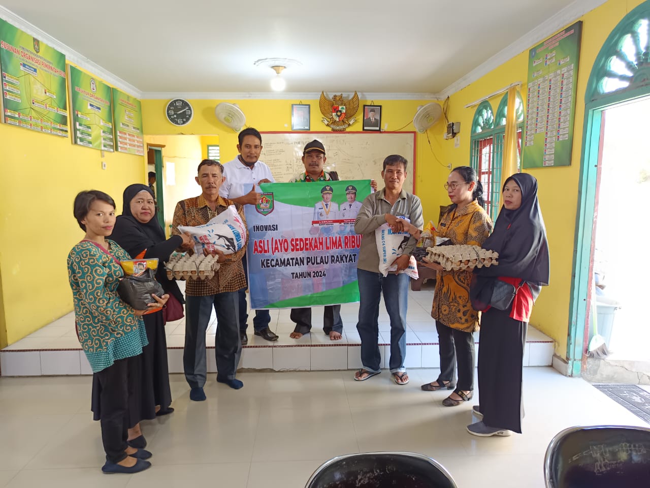 Pemerintah Kecamatan Pulau Rakyat melalui Kasi Kesra dan Kasi Pelayanan melaksanakan penyaluran program ASLi (Ayo Sedekah Lima Ribu) kepada warga Desa Padang Mahondang di Balai Desa Padang Mahondang, Jum'at (27/09/2024).