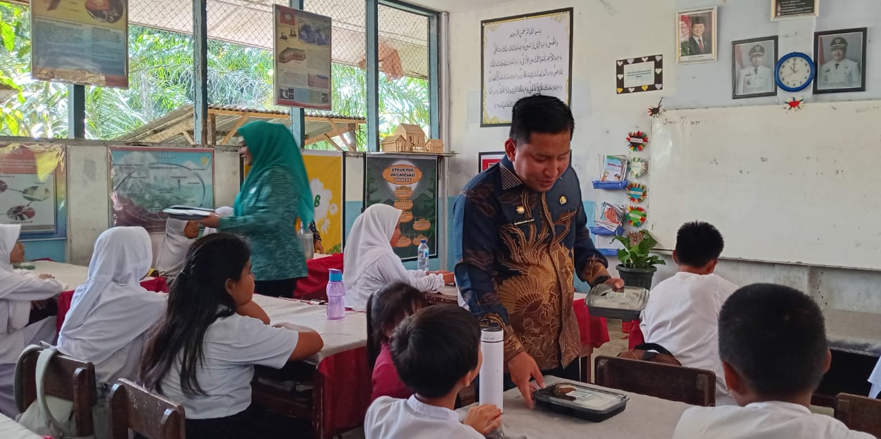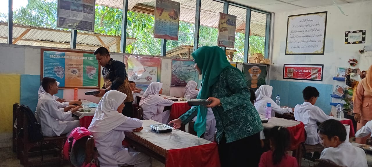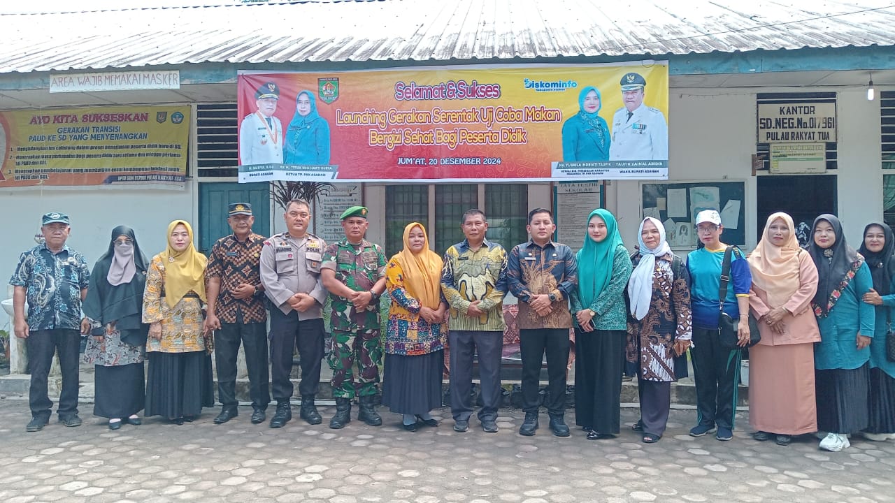 Kegiatan launching gerakan uji coba pemberian makan bergizi sehat bagi peserta didik di UPTD SDN 017961 Dusun II Desa Pulau Rakyat Tua Kecamatan Pulau Rakyat, Jumat (20 Desember 2024).